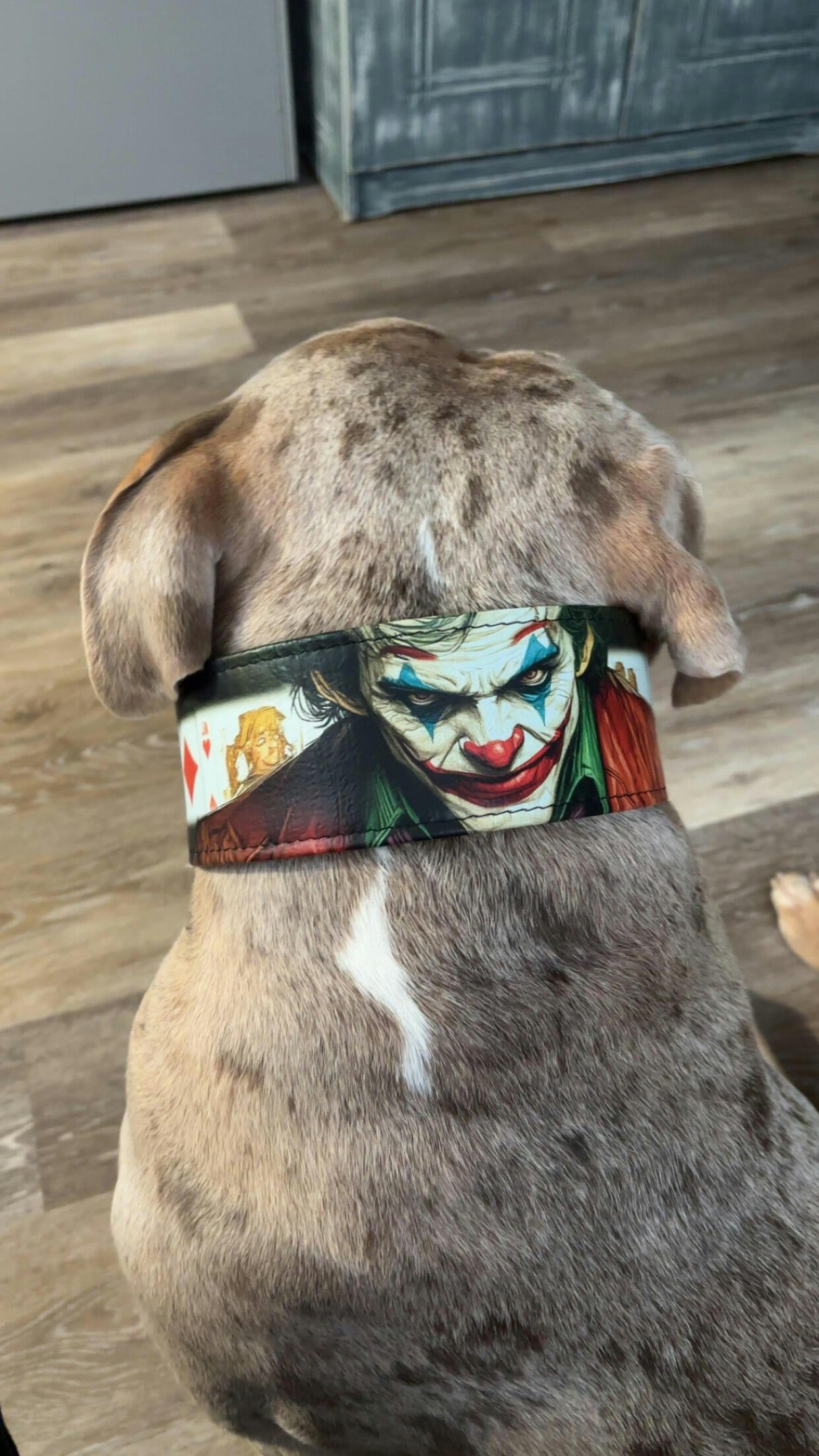 Unleash your dog’s inner rebel with our Joker film-inspired Collar from the Exclusive Halloween Collection. Handcrafted from high-grade genuine leather with a custom print, this piece blends Gotham’s chaotic charm with Bestia’s signature craftsmanship. Perfect for Halloween, cosplay, or everyday walks, this collar adds a daring touch of villainous style to your dog’s look — because madness has never looked this good.
